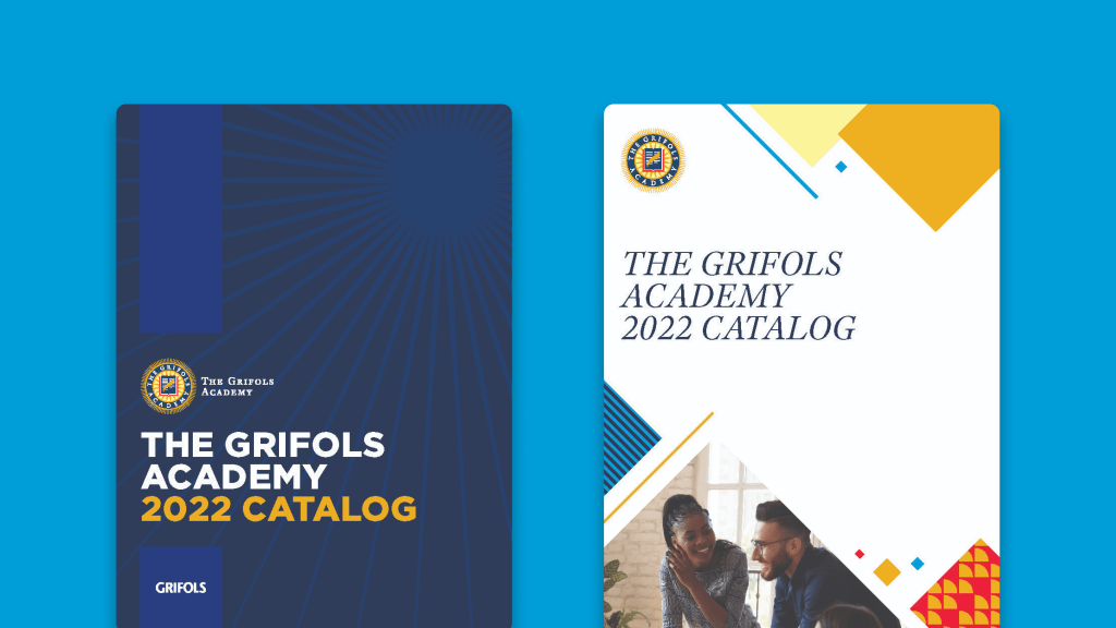 The Grifols Academy is an employee training center that offers professional development courses, technical training, events management, and other services to Grifols Employees globally. They approached Carimus looking for a refreshed academy catalog and some follow-up pieces.