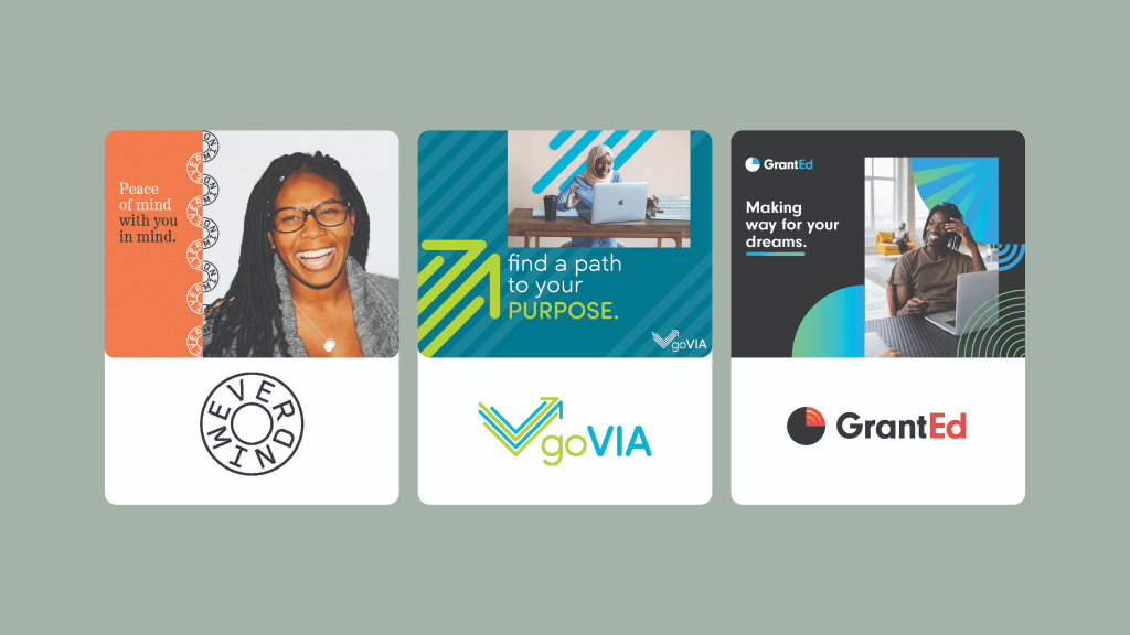 With a mood board selected we moved on creating the logo and brand concepts. I personally worked on the GoVia concept while other designers on the team created the other concepts. Ultimately the MTM team decided to move forward with GrantEd as their name and brand concept.